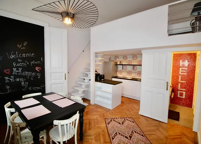 El apartamento Rozy'S Place Budapest se encuentra a 950 metros del Teatro y Opereta de Budapest y a 10 minutos a pie de la estación de metro Vörösmarty utca.